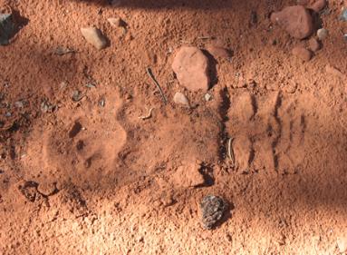 detected one and then two cougar prints, vague in the shade of the trees and shrubs, but definitely cougar. Kevin
